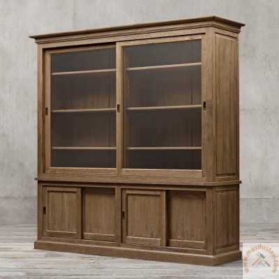 Era Koyu Karamel Ceviz Renkli Sürgü Kapaklı Geniş Masif Vitrinli Dolap