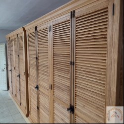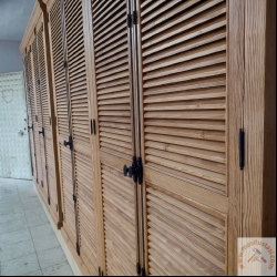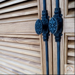- Ürünlerin tamamen el işçiliği ile ürettiğimiz 4 adet panjur kapılarında antik formda paslanmaz pirinç ispanyolet kilit sistemleri kullanıldı.