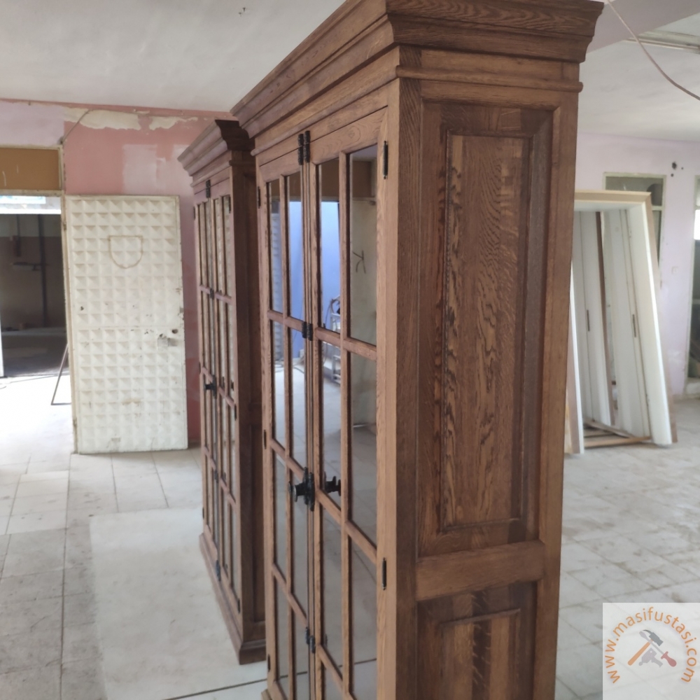 Değerli takipçilerimiz, Zonguldak - Ereğli'den Evrim Hanım için Yükseklik: 210 cm Genişlik: 130 cm Derinlik: 40 cm ölçülerinde üretmiş olduğumuz Kastor Masif Koleksiyonumuza ait Kastor 2 Kapılı Kitaplık - Vitrinli dolap ürünlerinin üretim ve sevkiyatı tamamlandı.